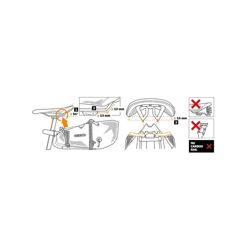 3. Il bordo laterale inferiore della sella deve essere più alto di almeno 14 mm del bordo inferiore del telaio della sella (misurato nel punto di piegatura)