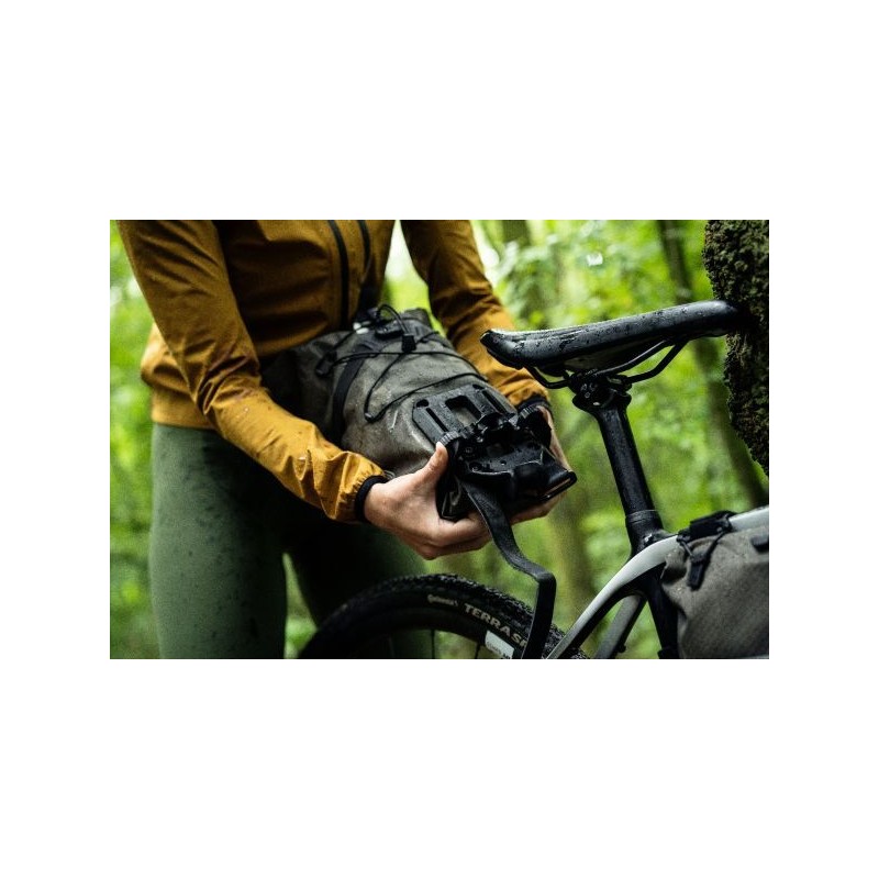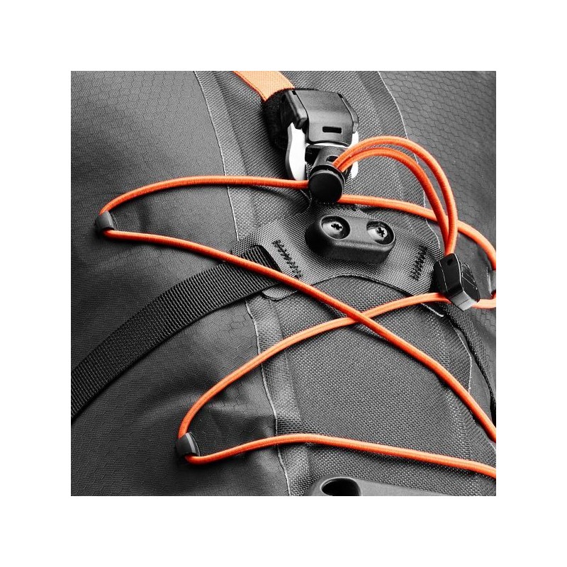 Che sia un single trail, un passo alpino o un percorso di ghiaia, con l'impermeabile Seat-Pack QR siete pronti per ogni avventura in bicicletta. Con l'innovativo e brevettato sistema di fissaggio Seat-Lock, la borsa in tessuto di nylon resistente all'abrasione è super stabile, si monta rapidamente e si smonta altrettanto rapidamente in maniera completa. Grazie al morsetto adattatore, il Seat-Pack QR è adatto anche ai reggisella abbassabili e richiede solo 4,3 cm di spazio sul reggisella. Il fondo rigido e le cinque cinghie di compressione assicurano che il contenuto sia imballato in modo sicuro e stabile. Una valvola con passante aiuta la compressione del volume dello zaino e all'esterno la corda elastica permette di fissare l'attrezzatura supplementare. Per evitare danni in caso di contatto con gli pneumatici, una piastra protettiva è attaccata alla parte inferiore del Seat-Pack QR, e serve anche da parafango.