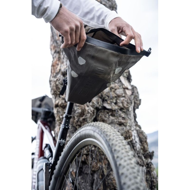 Un vero classico ORTLIEB in una nuova versione rivisitata: questa borsa è così pratica che non può mancare in nessun viaggio in bicicletta! ola Saddle-Bag impermeabile nella versione piccola da 1,6 L (ideale per bici da corsa e mountain bike), è ideale per contenere per esempio il tubo flessibile di ricambio e gli attrezzi tascabili. Nella versione grande da 4,1 l offre quasi lo stesso spazio di un piccolo zaino, il che la rende la borsa supplementare ideale nel caso si abbia molto bagaglio. Grazie alla chiusura a rotolo comprimibile e alle fibbie laterali a innesto, il contenuto viaggia in modo sicuro e senza oscillazioni, ma rimane sempre accessibile facilmente.