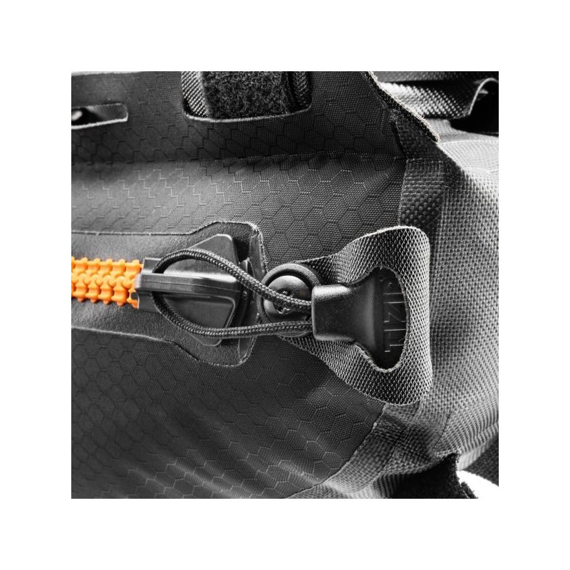 La soluzione ragionata per tutti coloro che portano sì il bagaglio sul telaio, ma non rinunciano alla borraccia a portata di mano. Anche i possessori di mountain bike full suspension, che dispongono di uno spazio limitato, possono usare questo bagaglio sul telaio. Il Frame-Pack Toptube di ORTLIEB offre spazio sufficiente per oggetti pesanti come i picchetti della tenda, attrezzi o provviste, che vengono fissati alla ruota con un baricentro molto basso. Non solo la borsa è impermeabile, ma anche la chiusura lampo, così che nemmeno l’attraversamento di un fiume possa fermare il vostro viaggio.