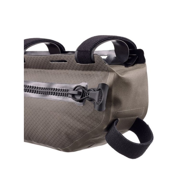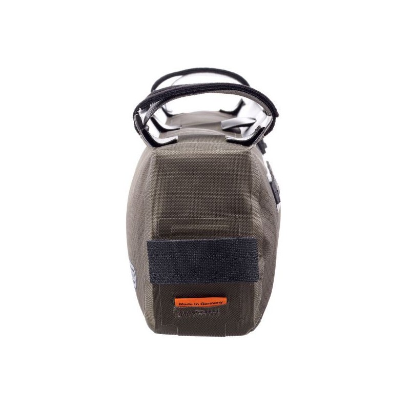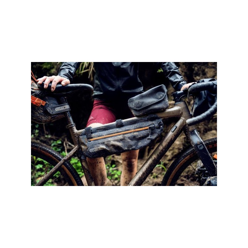 La soluzione ragionata per tutti coloro che portano sì il bagaglio sul telaio, ma non rinunciano alla borraccia a portata di mano. Anche i possessori di mountain bike full suspension, che dispongono di uno spazio limitato, possono usare questo bagaglio sul telaio. Il Frame-Pack Toptube di ORTLIEB offre spazio sufficiente per oggetti pesanti come i picchetti della tenda, attrezzi o provviste, che vengono fissati alla ruota con un baricentro molto basso. Non solo la borsa è impermeabile, ma anche la chiusura lampo, così che nemmeno l’attraversamento di un fiume possa fermare il vostro viaggio.
