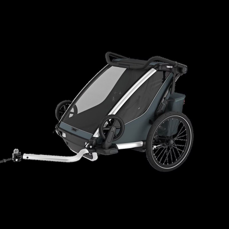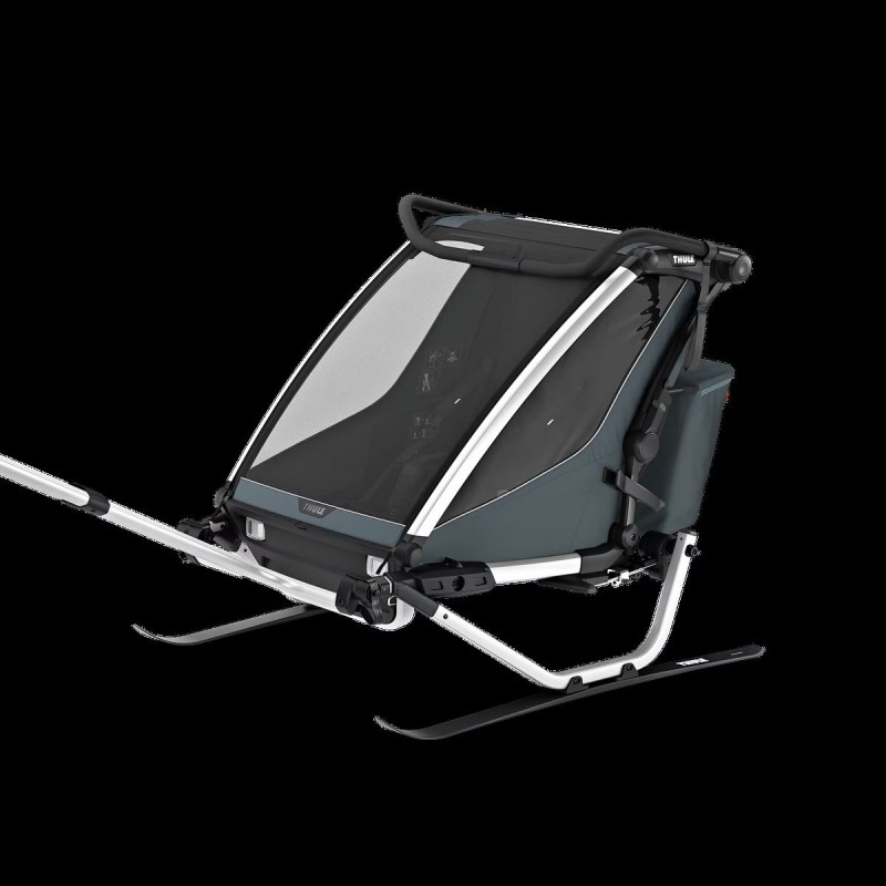 Thule Chariot Cross 2 si può tramutare in un ottimo compagno di allenamento con facilità grazie ad un kit da jogging o da sci (venduti separatamente). Il passaggio da un'attività all'altra è più fluido e confortevole che mai sia per il genitore che per il bambino.