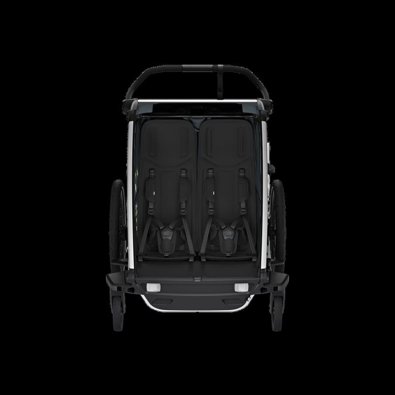 Dentro Thule Chariot Cross 2 i bambini sono accolti con sedili soffici ed ergonomici per un comfort perfetto. Thule Chariot Cross 2 si impegna per la sostenibilità, impiegando materiali che non solo sono privi di PFAS, bensì resistono ai danni del sole e mettono a disposizione la possibilità di riparazione o sostituzione, prolungando la durata del tuo rimorchio.