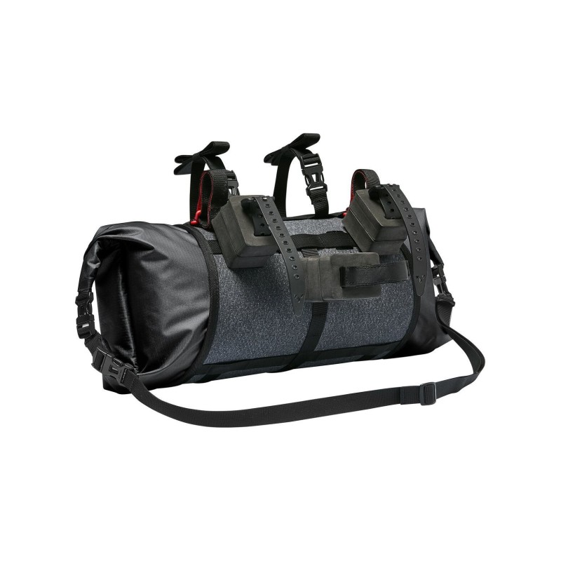 Soddisfa la tua sete di avventure! Ti piace dormire all'aperto e scoprire il mondo su 2 ruote? Con questa borsa da manubrio impermeabile realizzata in materiali saldati ad alta frequenza, tu e i tuoi amici non conoscerete limiti. La sacca impermeabile da 13 litri è accessibile da entrambi i lati e può essere compressa con la sua chiusura avvolgente. È un'eccellente scelta per attrezzatura leggera o un sacco a pelo. Puoi trasportare attrezzatura extra o persino una tenda leggera in cima con le cinghie. Le cinghie di fissaggio delle borse si adattano a tutti i manubri da mountain bike; con una larghezza di 30 cm, è compatibile anche con la maggior parte dei manubri da bici gravel o da strada. Basta fissarla al manubrio e al reggisella. L'attacco è regolabile in larghezza e un pratico distanziatore assicura che avrai sempre abbastanza spazio per frenare e cambiare. Le cinghie di compressione orizzontali colorate in velcro e una doppia cinghia verticale mantengono la borsa al sicuro in modo che il tuo carico non si sposti quando corri lungo un sentiero sterrato. Una caratteristica pratica: una cinghia per trasportare la Trailfront sulla spalla. La borsa da manubrio non è solo una pratica compagna per il bikepacking. Inoltre, contribuisce notevolmente alla salvaguardia dell'ambiente, poiché sia ??il sistema di montaggio che lo zaino sono realizzati con materiali riciclati al 100%.