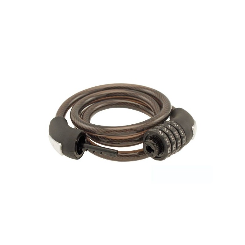 • Combinazione a 4 cifre • Completo di attacco al telaio • Diametro: 12 mm • Lunghezza: 1000 mm o 1200 mm o 1500 mm Specifiche tecniche: Tipologia Lucchetto: Cavo Spirale Sistema di apertura: Combinazione Lunghezza: 1500 mm Diametro: 12 mm