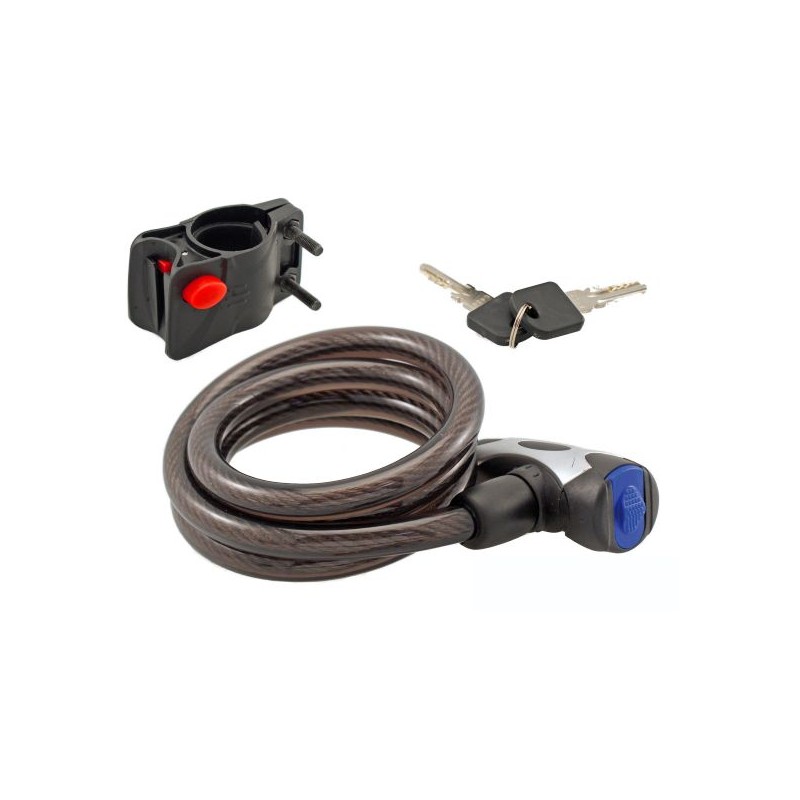 • Serratura con copertura antipolvere • Completo di attacco in nylon con riduzioni per fissaggio telai o canto sella • Diametro: 12 mm • Lunghezza: 800 mm o 1200 mm o 1500 mm Specifiche tecniche: Tipologia Lucchetto: Cavo Spirale Sistema di apertura: Chiave Lunghezza: 1500 mm Diametro: 12 mm