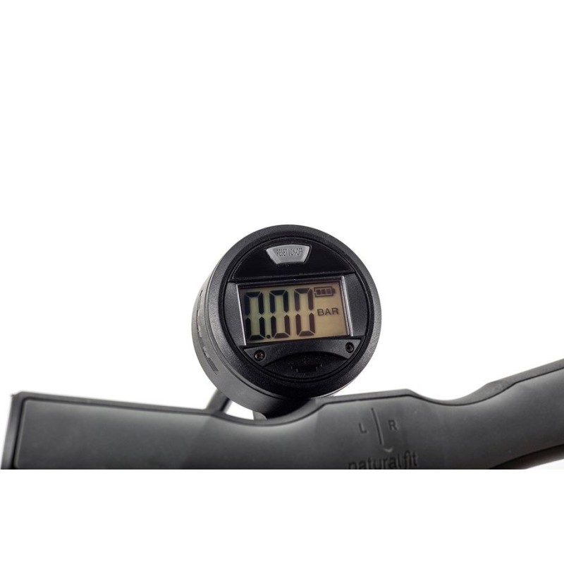 CARATTERISTICHE EZ-Head per valvole Presta e Schrader; impugnatura ergonomica Natural Fit; base stabile e canna in acciaio; manometro digitale da appoggio con retroilluminazione; valvola di rilascio dell'aria; tubo flessibile extra lungo; 160 psi max.