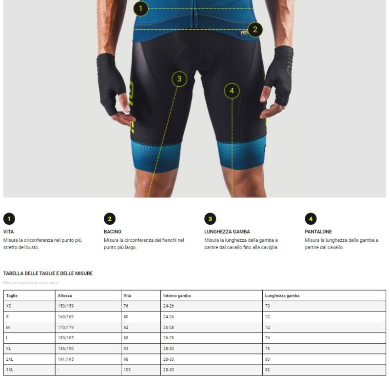 Taglie Altezza Vita Interno gamba Lunghezza gamba