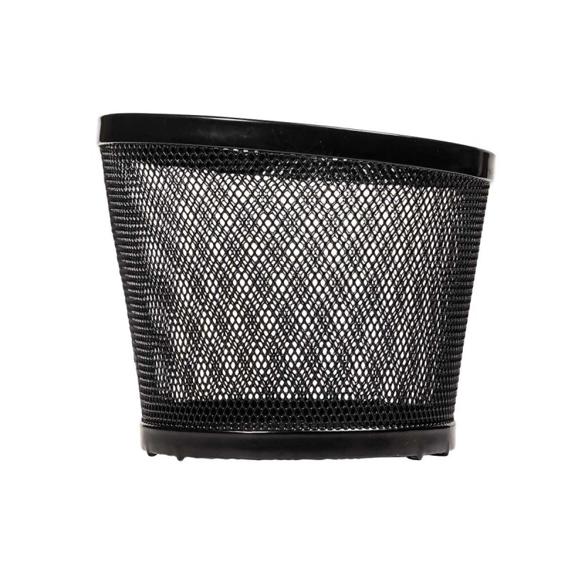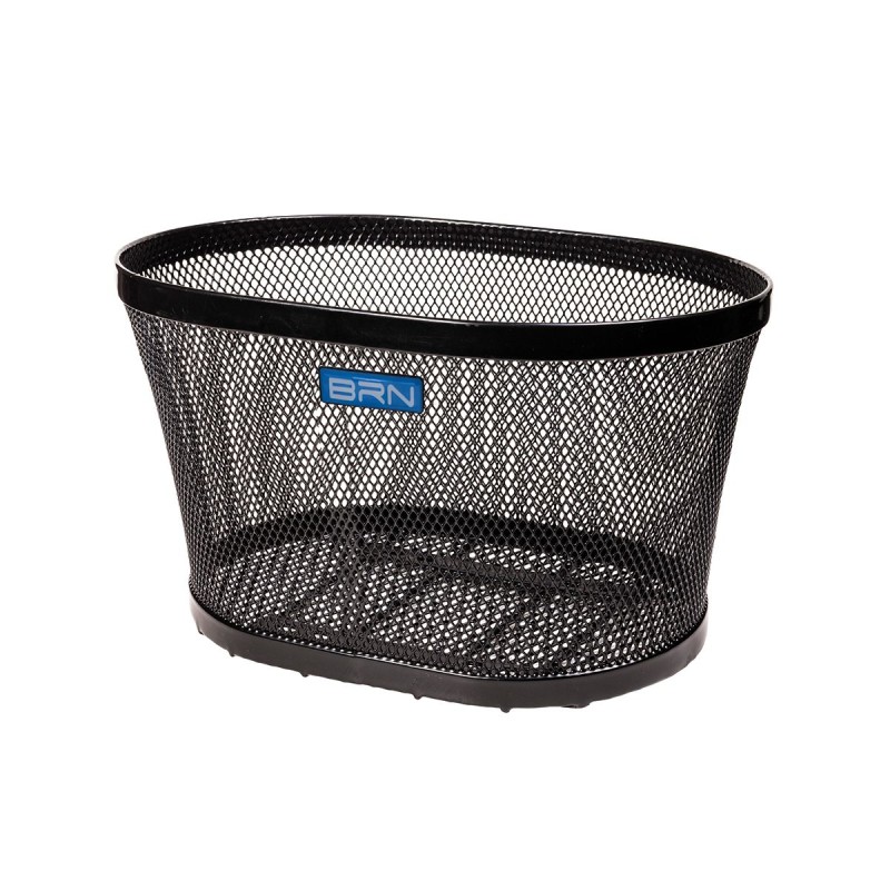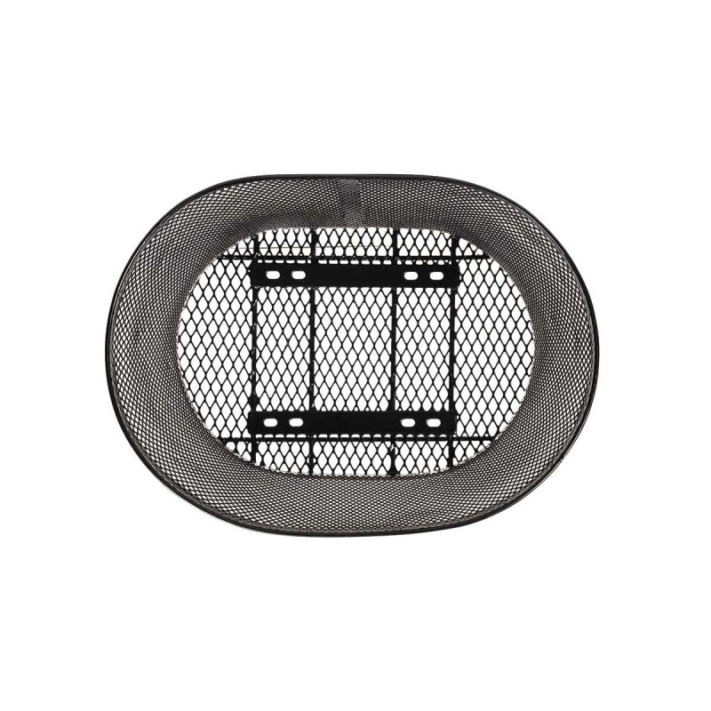 Cesto BRN Intreccio ovale anteriore in acciaio nero con misure pari a 370 x 275 x h225 mm. Nella confezione sono incluse le piastre per il fissaggio.
