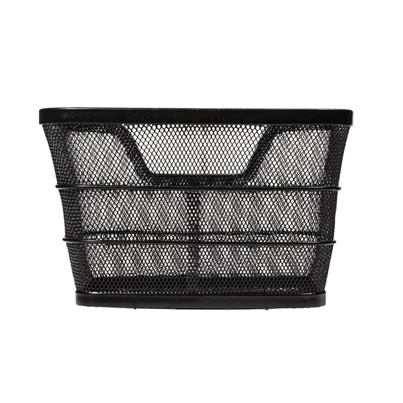 Cesto BRN Intreccio rettangolare anteriore/posteriore in acciaio nero con misure pari a 410 x 305 x h260 mm. Nella confezione sono incluse le piastre per il fissaggio.