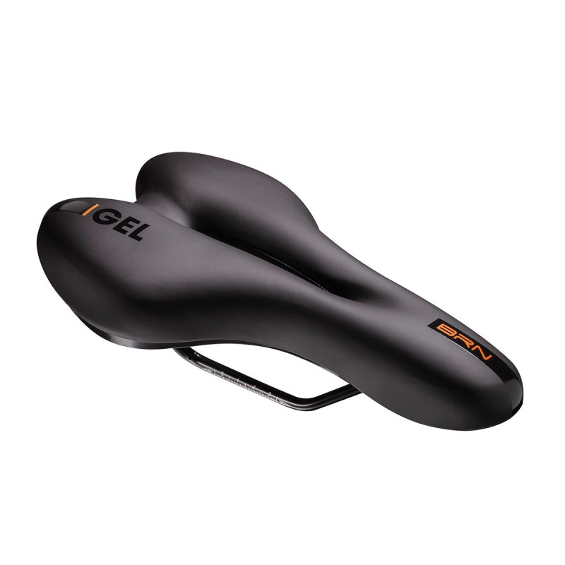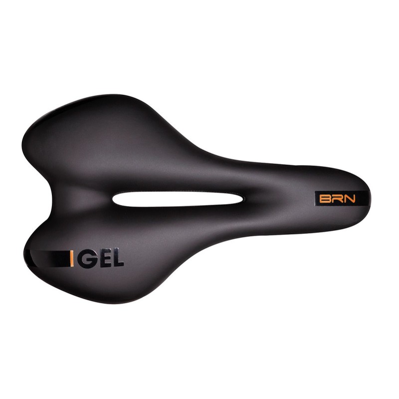 Sella BRN Dynamic Sport Gel Uomo poggiata su un telaio in acciaio e rivestita in microfibra. Le sue dimensioni sono 275 x 155 mm ed il peso è di 435 g.