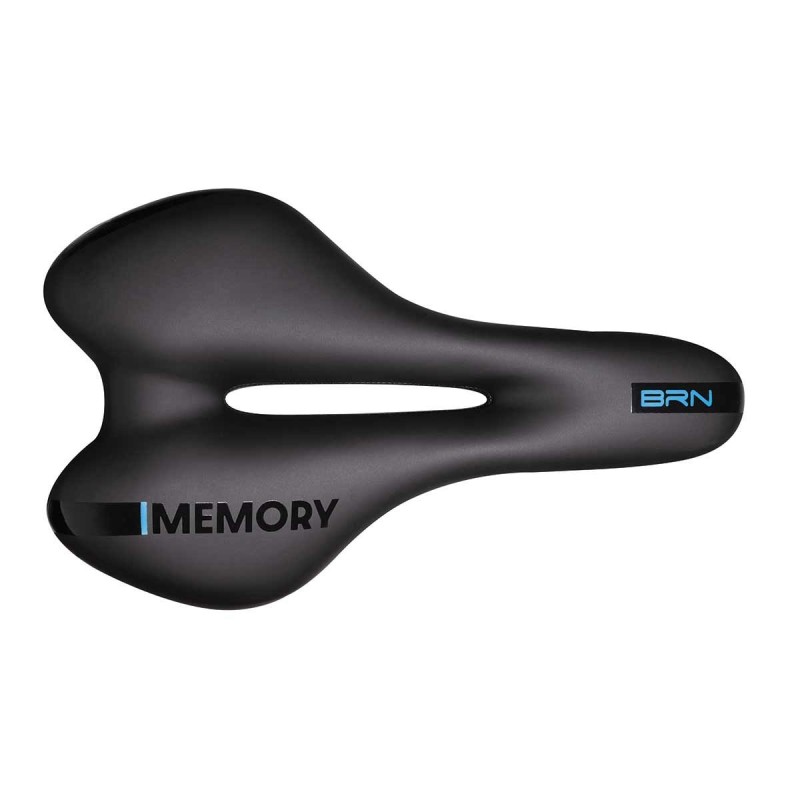 Sella BRN Dynamic Sport Memory Uomo poggiata su un telaio in acciaio e rivestita in microfibra. Le sue dimensioni sono 275 x 155 mm ed il peso è di 398 g.