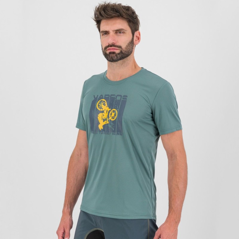 T-shirt da utilizzare quando prendi la mountain bike e affronti tutta la giornata in sella con il tuo zaino. su e giù per i single track. Comoda, fresca che mostra ai tuoi amici che sei un vero Biker.