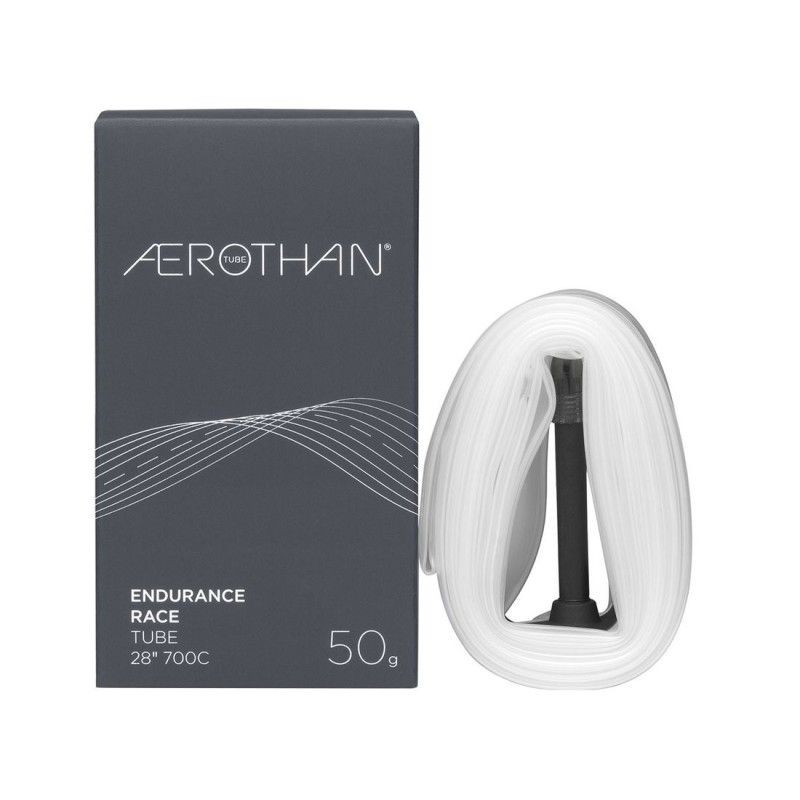 Quando si parla di utilizzo della bicicletta con la camera d'aria, la camera d'aria Aerothan Race è la prima scelta. Grazie ad una resistenza al rotolamento contenuta, convince con una dinamica di guida propulsiva e fluida. Rispetto alle camere d'aria in butile, si ottiene un risparmio di peso di oltre 100 grammi per l'intera bicicletta. Si può fare affidamento su Aerothan Tube Race non solo per la straordinaria protezione contro le forature, ma anche nelle discese: persino in caso di frenate di emergenza in successione breve, con i freni tradizionali, mantiene l'indeformabilità al calore.