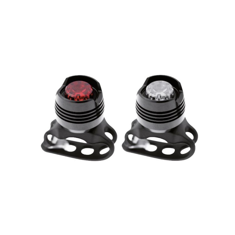 Kit fanalino anteriore+posteriore Wag Metal in alluminio, batterie incluse. Colore nero.