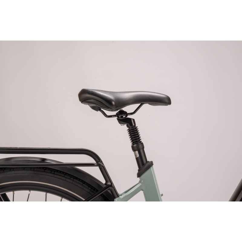 Bici dotatata di frecce direzionali, segnalazione di STOP collegato al freno, luci e abbaglianti e possibilità di attivazione tramite bluetooth, codice personalizzato o NFC card.