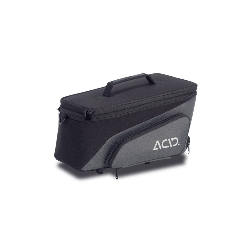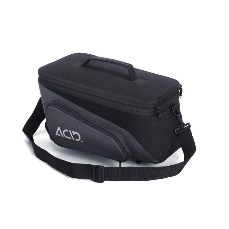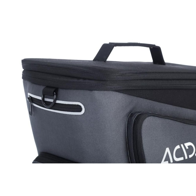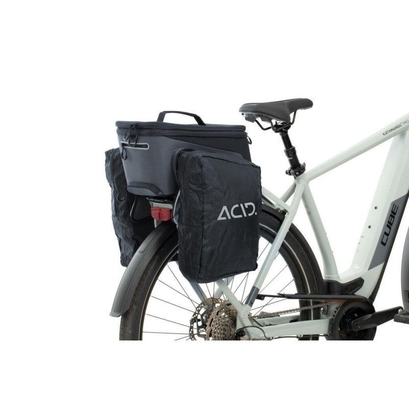 compatibile con tutti i vettori RILink di ACID e CUBE; ACIDO RILink; tasche laterali pieghevoli; scomparto principale ridimensionabile; tracolla regolabile; elementi riflettenti; tasca a rete; parapioggia