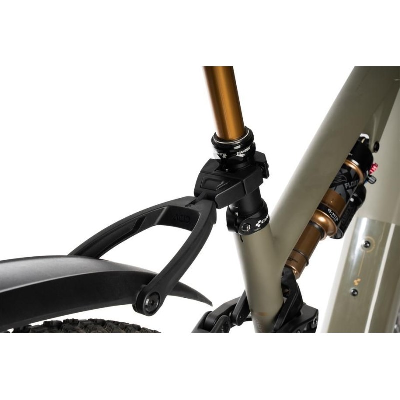 adatto a mountain bike da 27;5“- 29”; nuovo collegamento a scatto; dopo un'unica installazione dell'adattatore sul reggisella; il parafango può essere montato e smontato in pochi secondi con il sistema a scatto; made in Germany; parafango a 2 componenti con protezione del bordo in gomma; il braccio a doppio snodo garantisce la massima gamma di regolazione; finitura opaca-lucida