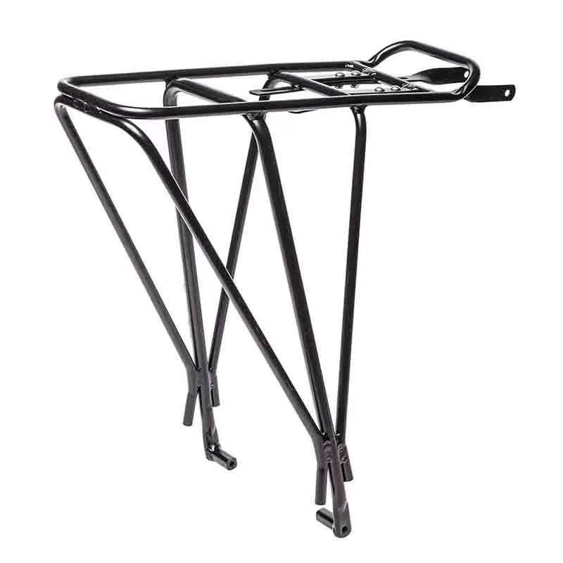 Portapacco BRN Cerere in alluminio nero compatibile con bici 28" - 29" e portata massima di 25 kg. La sua piattaforma misura 385 x 138 mm, il diametro dei tubi varia da 10 a 13 mm ed il suo montaggio è studiato per freni a disco.